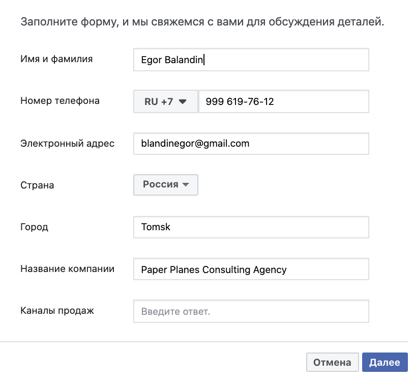 Заполнил контактные данные и отправил заявку